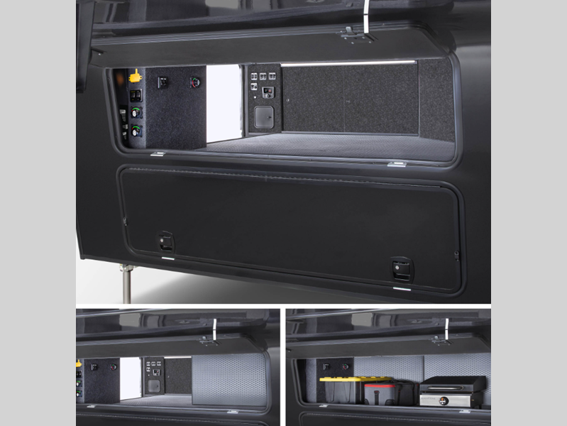 - 3-Way Pass-through Storage w/ Multi-Functional Flip-Up Bulkhead Dividers (Best-in-Class)