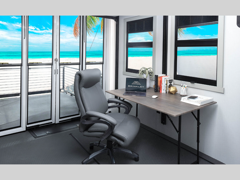 It won't take long to find residential features throughout, including CraftSense wood trim construction, GE appliances, dimmable ceiling can lighting, and premium cabinets and drawers. The garage is outfitted with an adjustable tie-down system, tough-ply floors and walls, a Zero-Gravity ramp door, and 3-season patio doors so you can bring the outdoors in! These toy haulers also feature an Industry best insulation package, reinforced and walkable slide roofs, and Brinkley's automotive exterior seals package for added durability and strength!