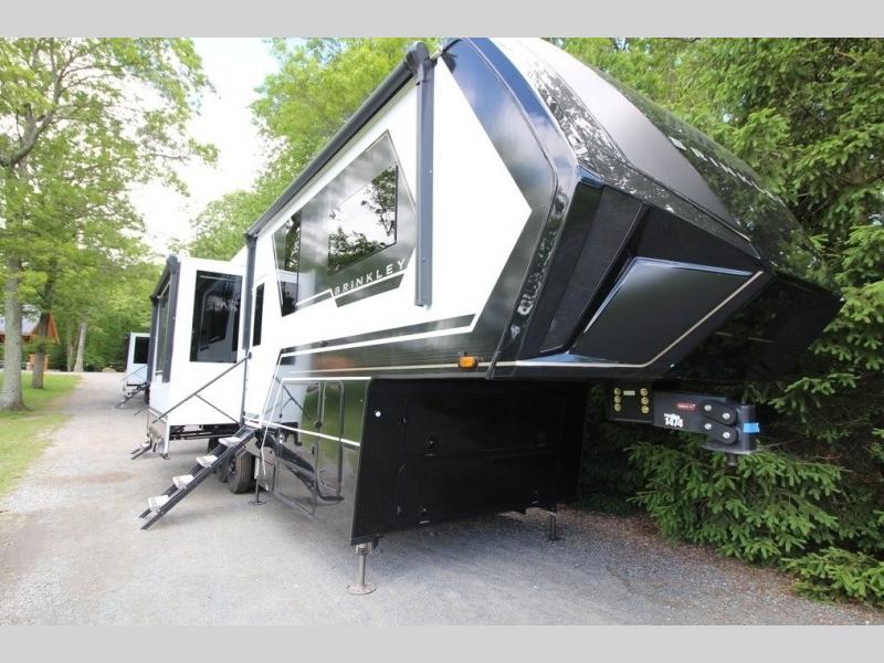 With any Model G toy hauler fifth wheel by Brinkley you will enjoy luxurious amenities, tons of storage space, and innovative features that have been developed and tested in the real world. Durable construction includes an industry leading PDI process, an industry best insulation package, and reinforced and walkable slide roofs. Some of the exterior features you'll find are a 3-way pass-through with a multi-functional flip-up bulkhead wall, under I-beam storage, a MAX-Vision reverse lighting system, and a low-maintenance roof to name a few. A Rockford Fosgate audio system comes standard, along with a Full app-based coach control system (iOS & Android) that lets you control your fifth wheel's functions right from your mobile device. You will find the solar system with a designated storage area to be ultra convenient, plus there is a FlexPower 5500 with a dual fuel inverter generator for all your power needs. Head inside to find a residential interior with Brinkley's CraftSense wood trim construction, floating entrance steps, integrated window screens and insulated blackout blinds, and residential solid surface countertops plus backsplash. You will also enjoy the neon shower lighting and recessed medicine cabinets in the bath, plus motion activated LED bed lights and dual bedside outlets in the bedroom. Choose a Model G toy hauler fifth wheel to experience all the luxury it has to offer!