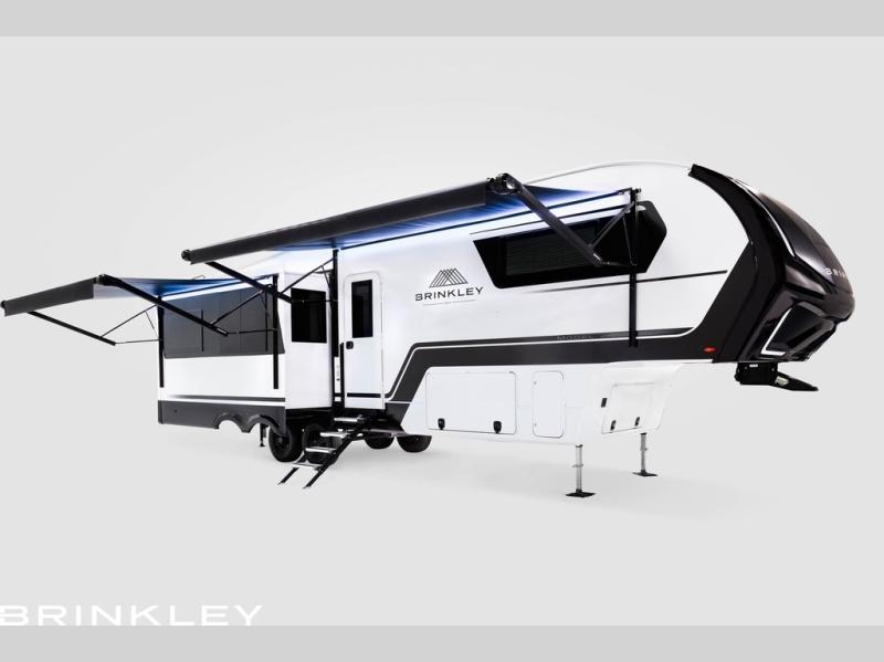 The Brinkley mid-profile Model Z fifth wheels bring you clean lines and an upscale look with plenty of style and exciting new features like the industry first brass plumbing connections. These units also feature an automotive grade front cap, plenty of exterior storage, dual exterior hot and cold showers, and wide stance leveling jacks for easy set up. Residential frameless windows provide a clean look and beautiful views, and ample electrical outlets and 6 USB/USB-C outlets allow all of your electronics and appliances to easily be used and charged.