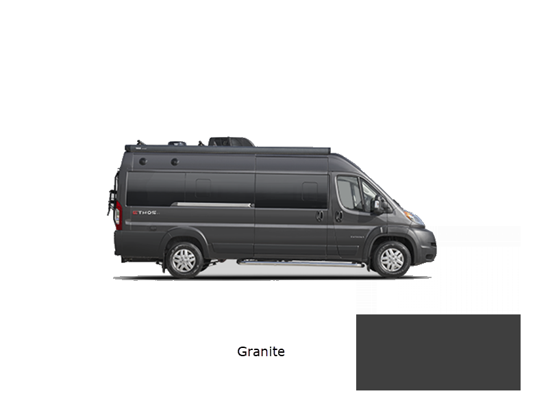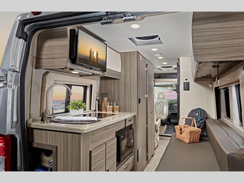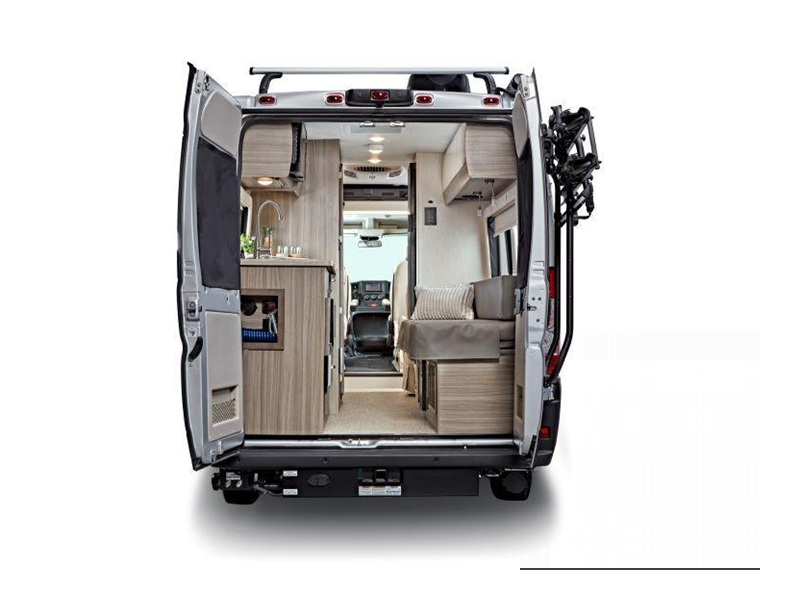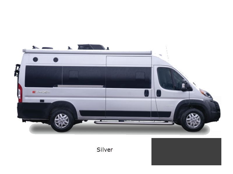 Sleeps 2 Length 20 ft 11 in Ext Width 6 ft 11 in Ext Height 9 ft 3 in Int Height 6 ft 2 in Interior Color Autumn Exterior Color Silver, Granite Hitch Weight 3500 lbs GVWR 9350 lbs Fresh Water Capacity 27 gals Grey Water Capacity 14.5 gals Black Water Capacity 13 gals Tire Size LT225/75R16E Furnace BTU 20000 btu Fuel Type Gas Engine 3.6L V6 24VVT Chassis Ram ProMaster 3500 Window Van Fuel Capacity 24 gals Wheelbase 159 in Refrigerator Type AC/DC Refrigerator Size 5.3 cu ft Convection Cooking Yes Cooktop Burners 1 Number of Awnings 1 Axle Weight Front 4629 lbs Axle Weight Rear 5291 lbs Water Heater Type Hydronic AC BTU 13500 btu TV Info Cab Overhead 32" TV Awning Info 13' Thule Armless w/LED Light Strip Gross Combined Weight 11500 lbs Shower Type Wet/Bath Shower Electrical Service 30 amp -
