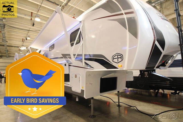 Sleeps 9 Slides 4 Length 42 ft 7 in Ext Width 8 ft Ext Height 13 ft 2 in Hitch Weight 2335 lbs GVWR 14335 lbs Dry Weight 11537 lbs Cargo Capacity 2798 lbs Fresh Water Capacity 60 gals Grey Water Capacity 75 gals Black Water Capacity 38 gals Furnace BTU 35000 btu Number Of Bunks 2 Available Beds King Refrigerator Type 12V Refrigerator Size 16 cu ft Number of Awnings 2 LP Tank Capacity 20 lbs Water Heater Type On Demand Tankless AC BTU 45000 btu TV Info LR LED TV Awning Info 19' & 11" Power Axle Count 2 Washer/Dryer Available Yes Number of LP Tanks 2 Shower Type Standard Electrical Service 50 amp Similar Fifth Wheel Floorplans