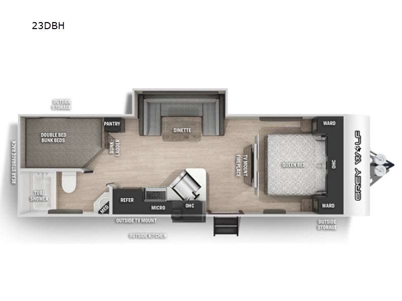 There are a wide variety of floorplans to choose from, each with comfortable seating and sleeping spaces, bath and kitchen amenities, plus plenty of storage spaces for your personal belongings, gear, food and more. Each Cherokee Grey Wolf is constructed with solid construction materials for added durability.