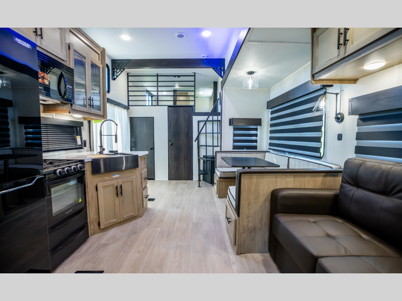 You will always find a comfortable place to relax with friends and family, cook with the full kitchen amenities, and clean up daily in the bathroom. There are also cozy sleeping spaces, plenty of storage options, and durable construction materials so you can enjoy your trailer for years to come!