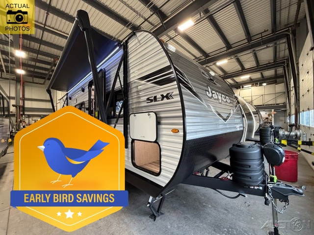The Jayco Jay Flight SLX travel trailer is quite easy to own because it is lightweight for an easier towing experience. Built on a fully integrated A-frame with galvanized-steel, impact-resistant wheel wells, the Jay Flight SLX has quality at its very foundation. That quality continues on to the electric self-adjusting brakes, easy-lube hubs, Magnum Truss roof system, and LP quick connect. Some of what the mandatory Customer Value Package includes is backup camera prep, Keyed-Alike entry and baggage doors, and an on-demand tankless water heater.