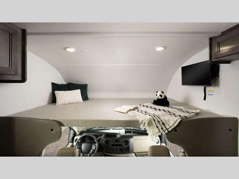 This entry-level Class C coach is perfect for all your travel and camping needs. The heating pads on the holding tanks help maintain functionality in colder weather, making late season camping more comfortable and worry-free, and the 4,000W generator will keep you powered up. There is also a durable Tufflex PVC laminated roof and Stronghold VBL roof, floor, and sidewall construction. Inside, you'll enjoy pleated blackout shades, high-intensity, recessed LED ceiling lights, an 84" ceiling height, and many more comforts.