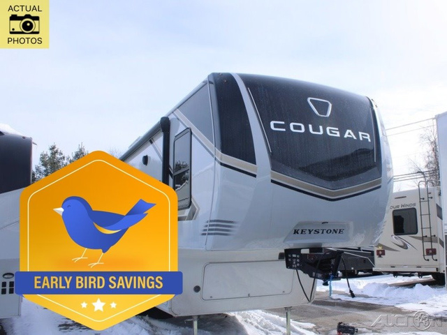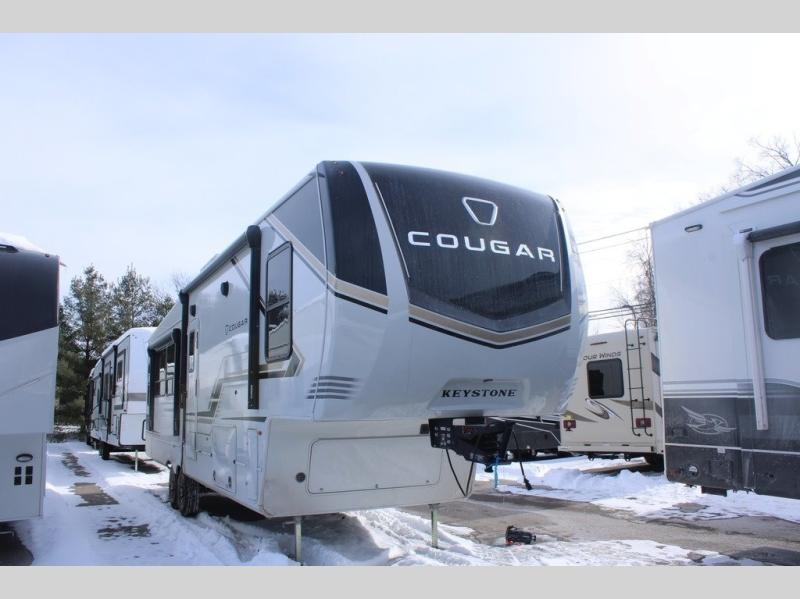 Spend more time having fun and less time worrying about your RV with the Keystone Cougar fifth wheel! These units have all that you will need for excellent vacations. The interior comes hardwood cabinet doors, solid surface kitchen countertops, an Oxygenics shower head and hose, plus a Vent-All window system. You will also appreciate the 12V charging stations throughout, the dual zone Bluetooth audio system, and the on-demand water heater for added comfort. The exterior is also fully outfitted with a convenience center, MaxTurn technology, Lippert axles with anti-lock braking system, and a Curt Road Armor shock absorbing equalizer for smooth towing. Each model is available with the optional Hero Edition. By choosing this edition, you can help support our nation's heros and their families by contributing to the Wounded Warrior Project. This optional package features an industry exclusive full-body paint matte finish, frameless windows, a glass entry door, blackout rims, and green LED exterior accent lighting; see dealer for more details!