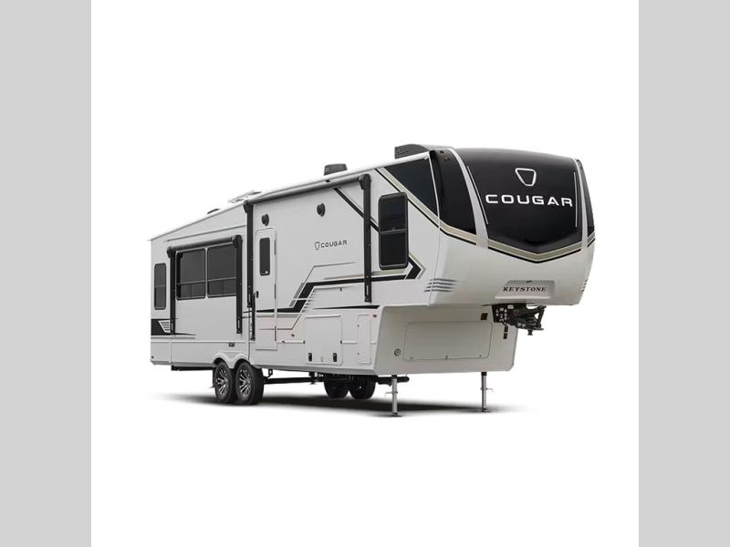 Spend more time having fun and less time worrying about your RV with the Keystone Cougar fifth wheel! These units have all that you will need for excellent vacations. The interior comes hardwood cabinet doors, solid surface kitchen countertops, an Oxygenics shower head and hose, plus a Vent-All window system. You will also appreciate the 12V charging stations throughout, the dual zone Bluetooth audio system, and the on-demand water heater for added comfort. The exterior is also fully outfitted with a convenience center, MaxTurn technology, Lippert axles with anti-lock braking system, and a Curt Road Armor shock absorbing equalizer for smooth towing. Each model is available with the optional Hero Edition. By choosing this edition, you can help support our nation's heros and their families by contributing to the Wounded Warrior Project. This optional package features an industry exclusive full-body paint matte finish, frameless windows, a glass entry door, blackout rims, and green LED exterior accent lighting; see dealer for more details!
